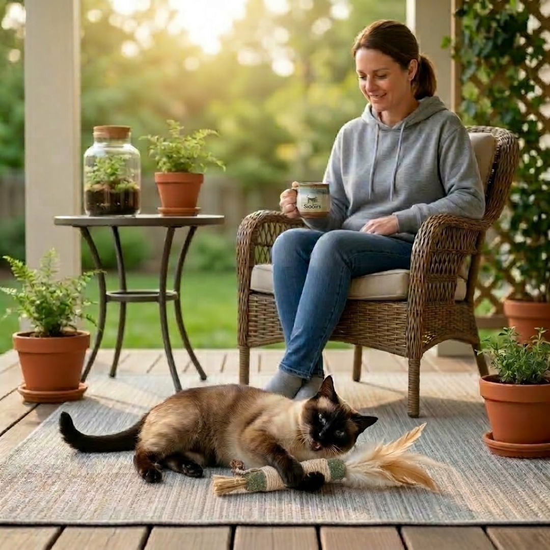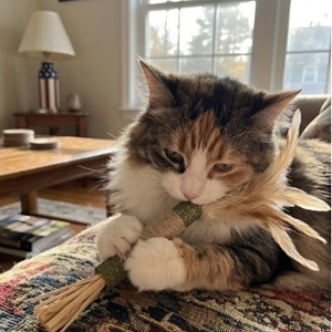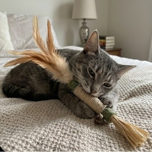 Absolutely. BioBite™ is crafted from 100% botanical materials: Silvervine, Gall Fruit, Raffia, and Sisal fiber. We use no plastics, synthetic adhesives, or toxic chemicals. As with any toy, we recommend supervising your kitty during play and replacing the stick if parts become excessively worn.