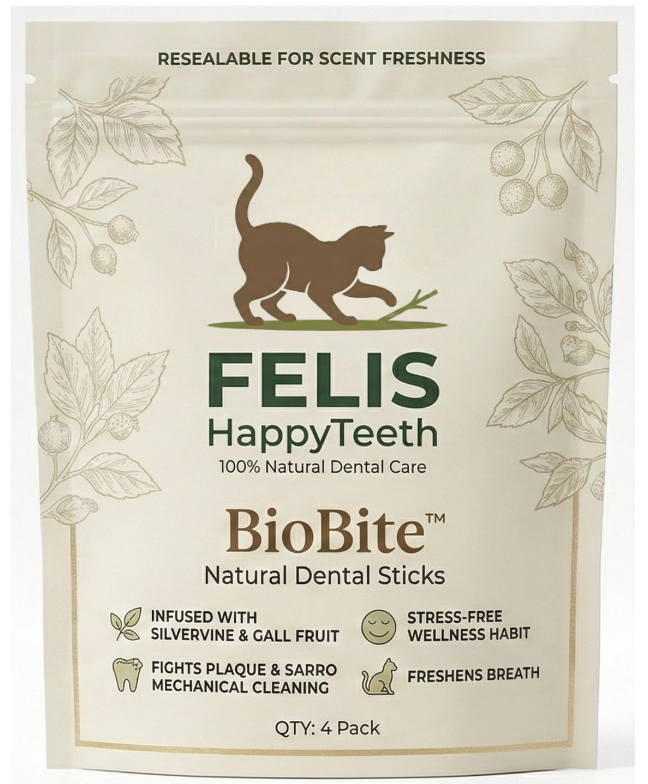 Yes! BioBite™ is perfect for all life stages. It’s the ultimate solution for teething kittens (7+ months) who chew on furniture, as well as senior cats who need to stay active and keep their breath fresh—gently and naturally. It’s a safe choice for your kitty’s entire life.